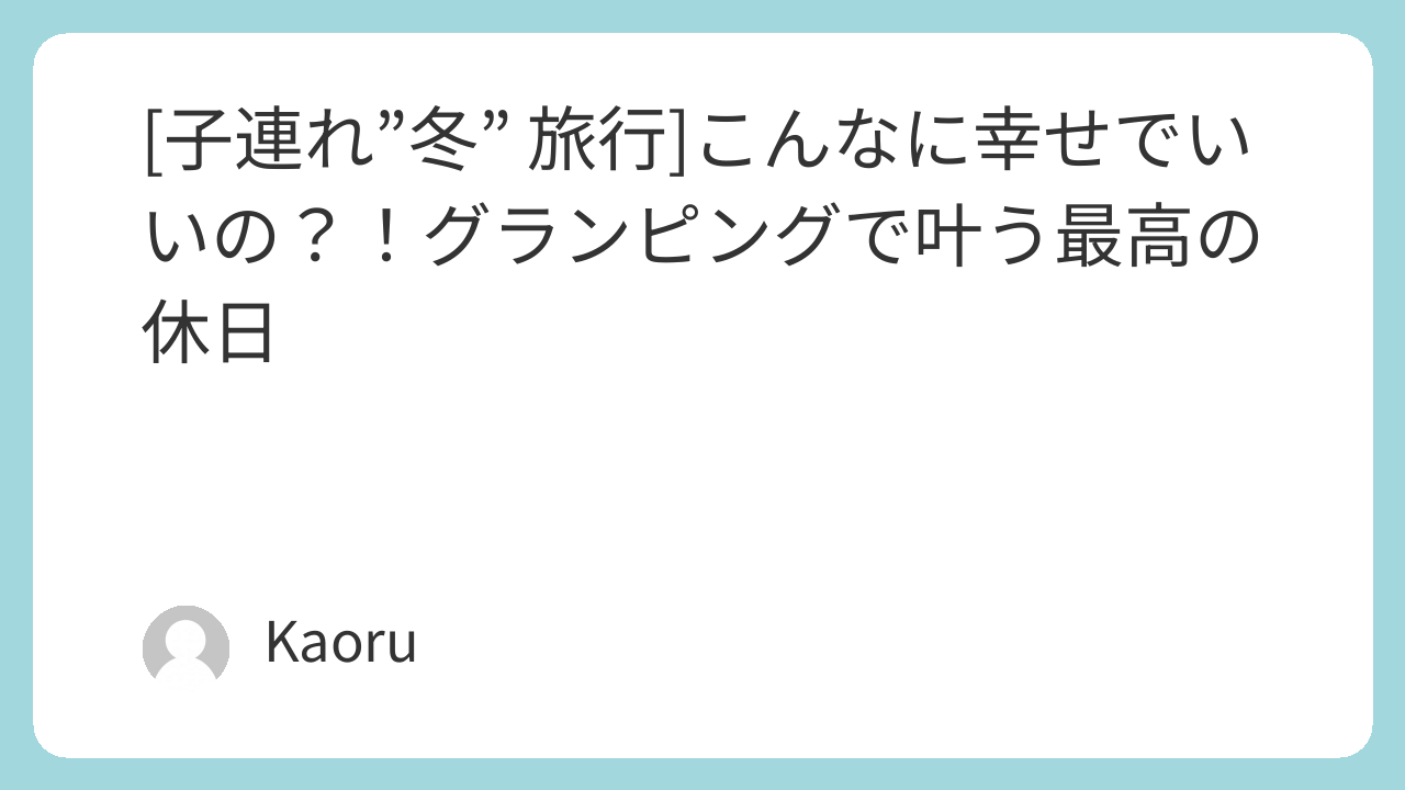 「まだ子どもが小さいから」と諦めず、ぜひこの冬、家族でグランピングに挑戦してみてください!