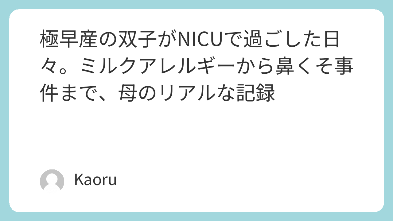 28週で出産することになった双子、産後すぐにNICUでの治療が始まりました。NICUでは保育器の中に置かれたさらに小さなカゴに入れられたくさんの管に繋がれ、顔はいつもやや苦しそうに目をつむっているようにしか見えませんでした。けれど、手や足は元気に伸びをしていて生きてるよ、元気だよと伝えてくれているようでした。そんなNICUであったことの記録です。